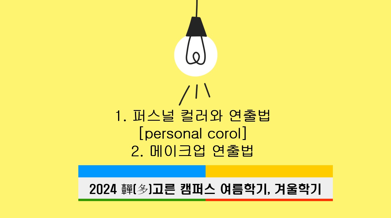 2024학년도 겨울학기에도 동명대학교 메이크업디자인학과에서 퍼스널 컬러와 메이크업 강의를 통해 자신을 표현하는 방법과 진로 탐색을 돕는 특별한 교과목이 개설됩니다. 이번 프로그램을 통해 전공을 체험하고 진로를 탐색하는 좋은 기회가 되길 바랍니다.