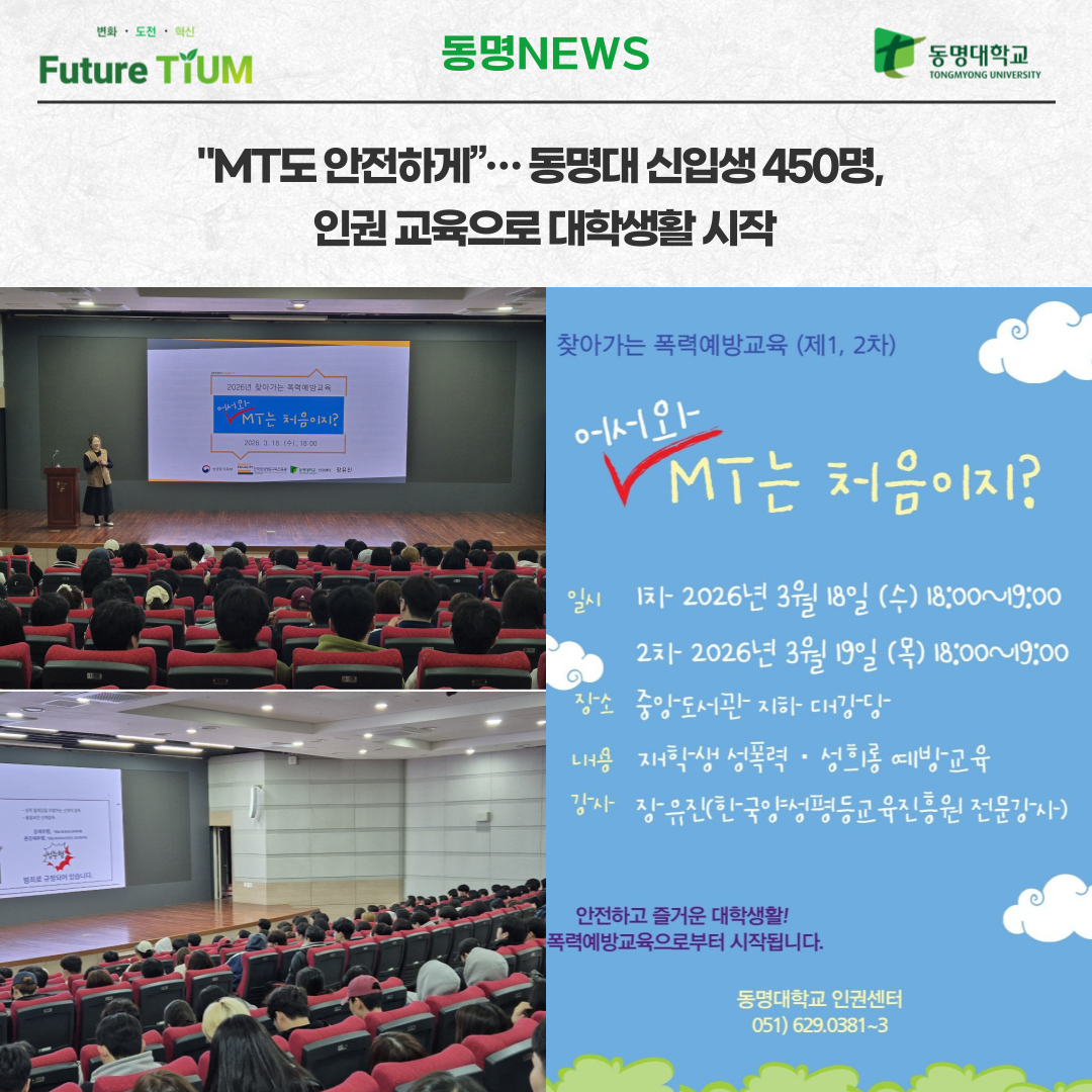 동명대 신입생 450명, 인권 교육으로 대학생활 시작