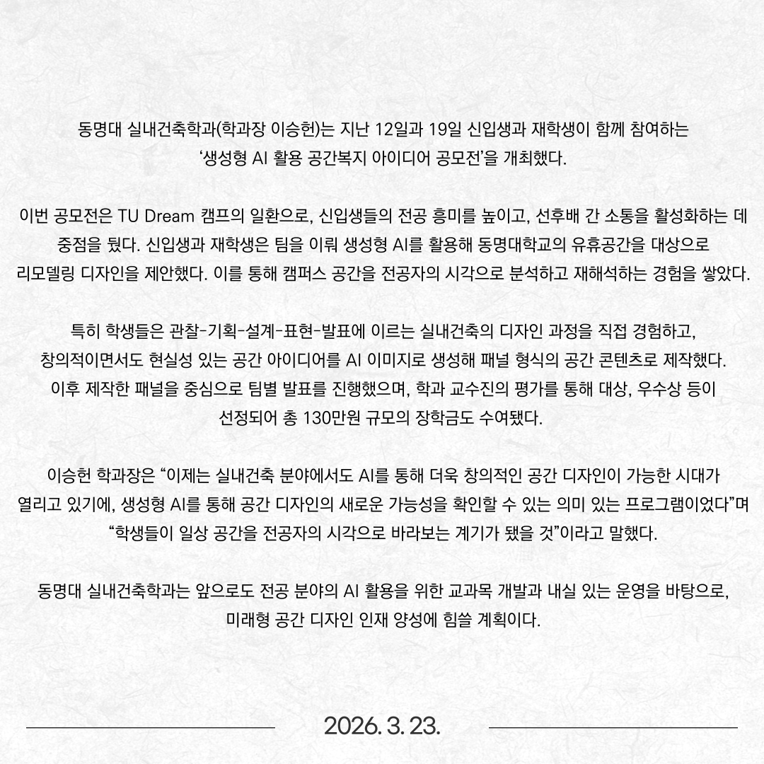 “AI로 캠퍼스를 바꾸다”… 동명대 실내건축학과 공모전 눈길